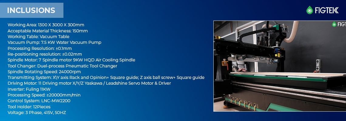 - Working Area: 1300 x 3000 x 300mm