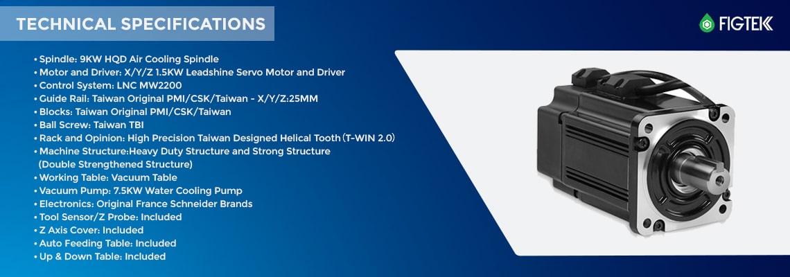 - Spindle Motor: 7 Spindle motor 9 kW Air Cooled Spindle